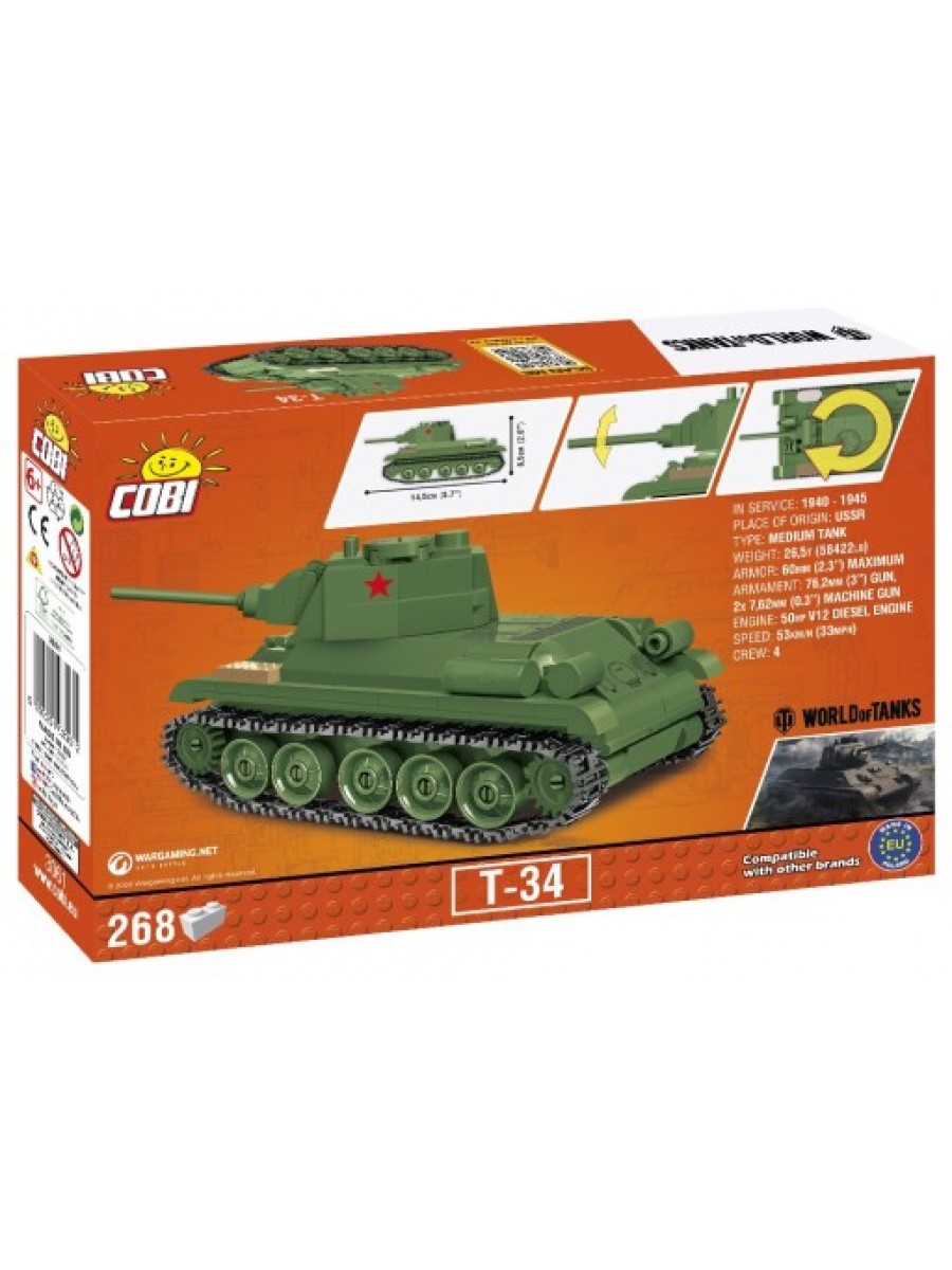 Коби Советский Танк T-34 Cobi 3061основной средний танк, являющийся ядром советских танковых сил с 1941 года. Благодаря своей огромной простоте, он был очень прост в изготовлении, использовании и ремонте. Отличался очень хорошей броней, вооружением и мобильностью. Многие историки признают, что танк Т-34 сыграл важную роль в победе союзных государств во Второй мировой войне. Танк разрабатывался и использовался десятками государств еще много лет после окончания войны, став одним из самых узнаваемых танков в мире!