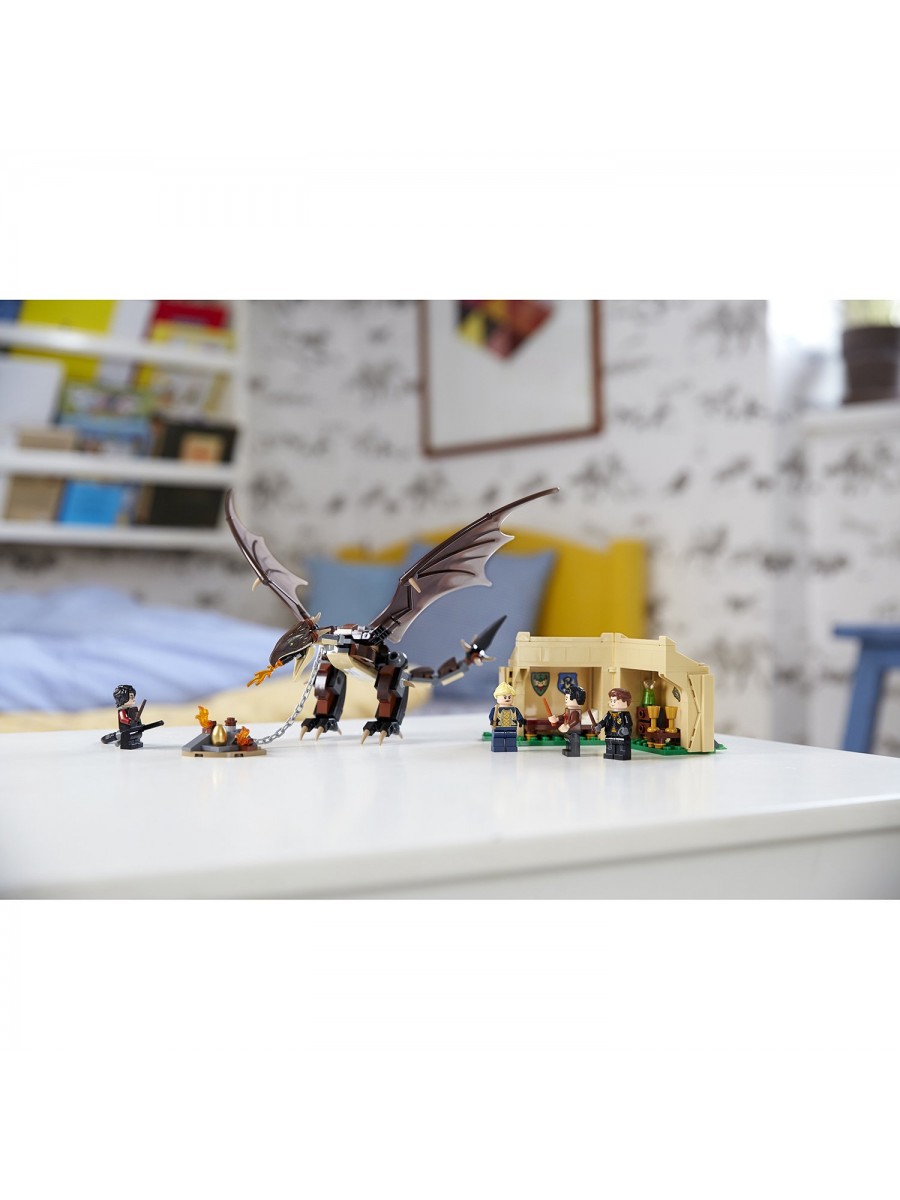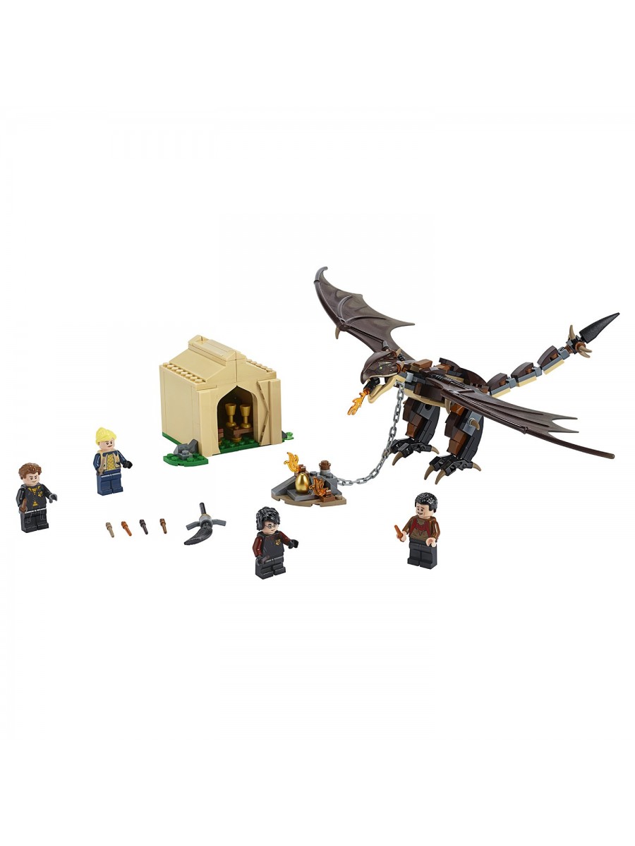 Одно из заданий, которое получил Гарри Поттер LEGO® Harry Potter, – заполучить Золотое яйцо. Задание непростое: чтобы его выполнить, придется оказаться хитрее своих соперников: – Виктора Крама, Фелёр Делакур и Седрика Диггори. Но на этом приключения не закончатся. Придется еще сразиться с Венгерским Хвосторогом и победить его. А сделать это сложно, потому что это – один из самых опасных драконов мира волшебников. Поможет в этом огненная вспышка, которую можно вызвать взмахом волшебной палочки.