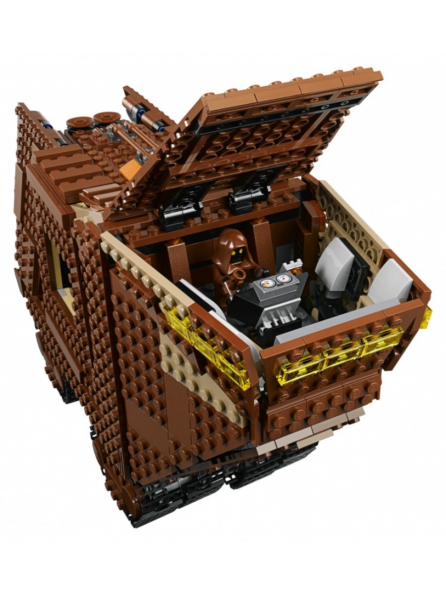 Открой кабину, чтобы джавы могли разместиться внутри корабля, а потом поверни механизм на задней панели, чтобы двигались гусеницы.