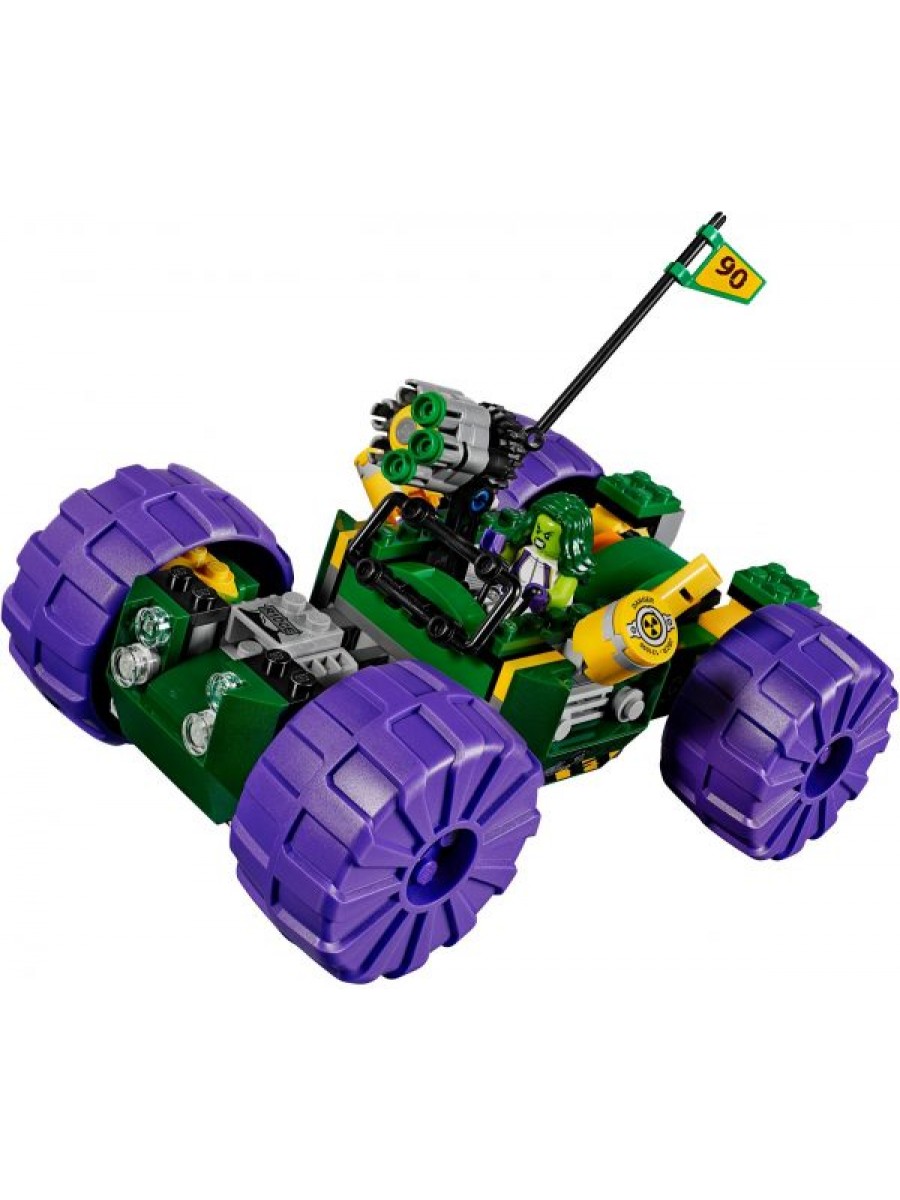 Машина Халков четырехколесная, выполнена в соответствующем зелено-фиолетовом цвете. С помощью рычагов ей управляет Женщина Халк, которую можно посадить в кабине, а Халк ставится на платформу сзади. На машине также установлен подвижный шестиствольный пулемет, который выстреливает при вращении. Более эффектной и стильной машину делают 2 ядерные бочки по бокам, флажок и наклейки в комплекте.