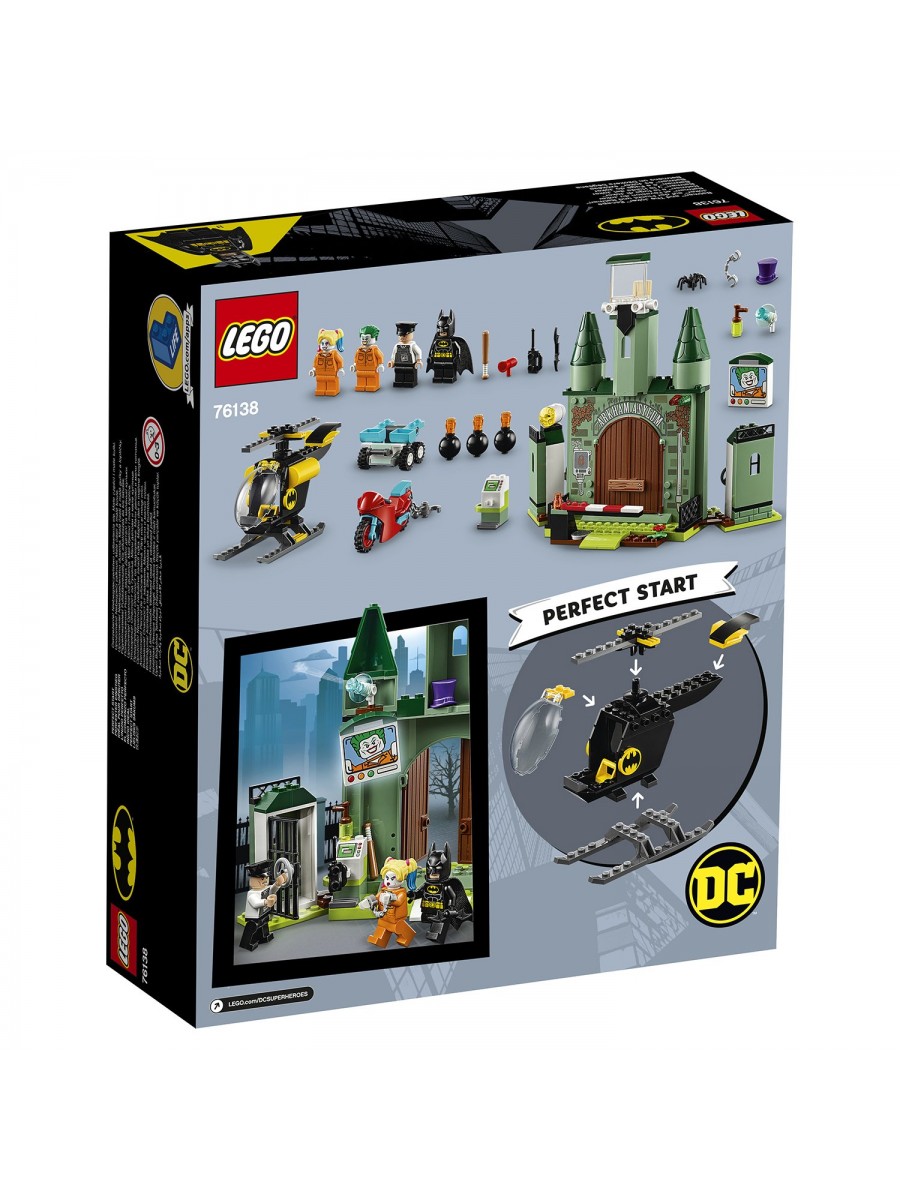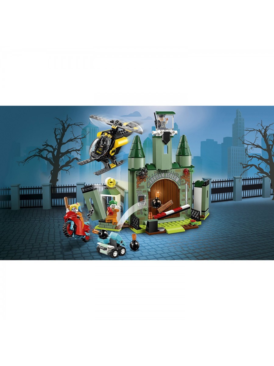 Бэтмен LEGO® – супергерой, и готов всегда прийти на помощь. Но сегодня потребуется помощь и ему самому. Джокер за свои злодеяния попал в психиатрическую больницу Аркхэм, но Харли Квинн пытается помочь ему сбежать. Остановить их будет не так-то просто, даже отправившись на вертолете Бэтмена. Беглецы завладели катапультой, с которой запускают по бомбы, пытаются снести стену тюрьмы, закрепив крюк на цепи на мотоцикле. Бандиты будут пойманы и отправлены назад в тюрьму.