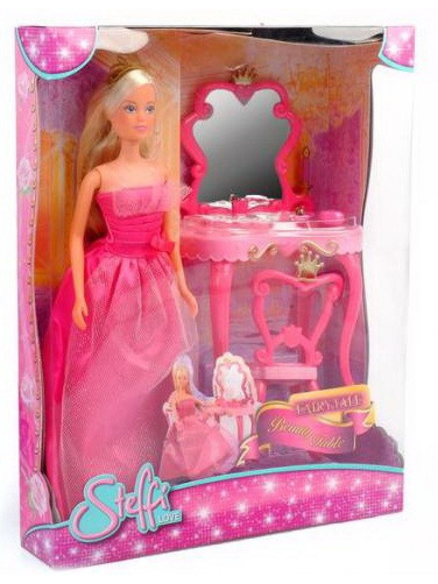 Кукла Штеффи с гнущимися в коленях ногами в бальном платье, туалетный столик с зеркалом, стул, аксессуары