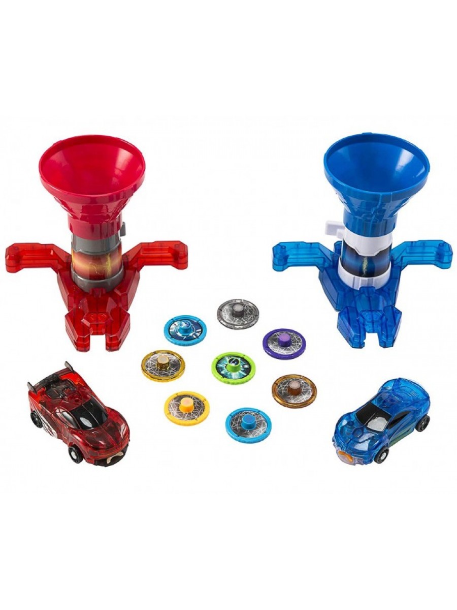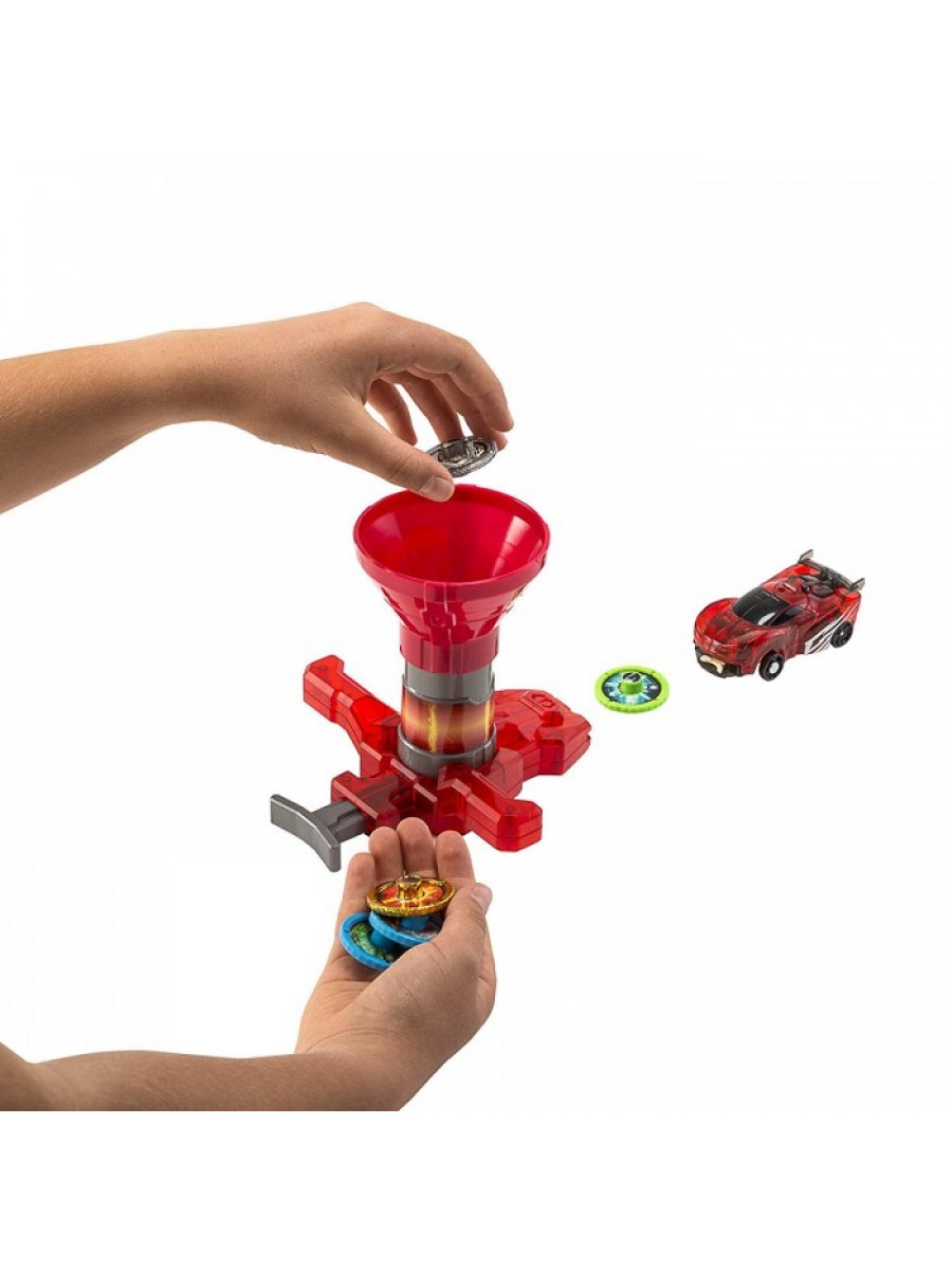 Положи диск в воронку в верхней части бластера, нажми на кнопку, и диск вылетит и трансформирует машинку. Бластер для дисков обладает прочной конструкцией с надежными креплениями и выполнена из высококачественного материала.